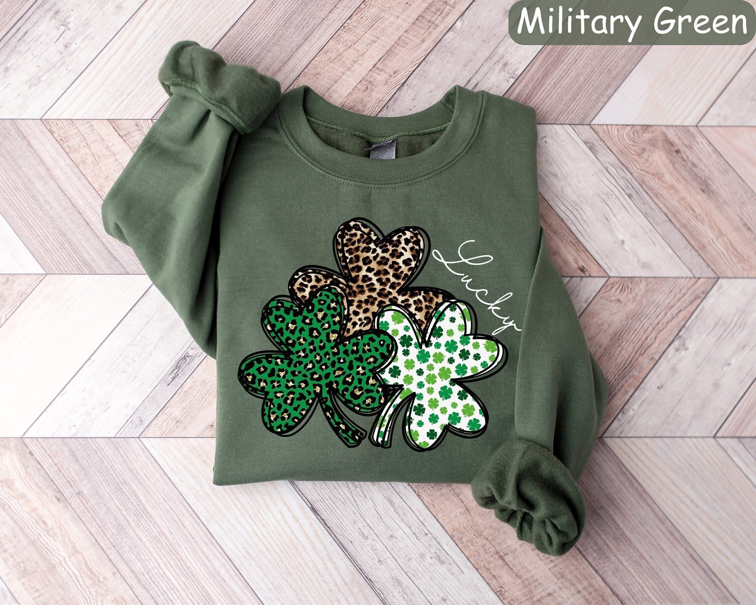 Leopard Shamrock Sweatshirt, Womens Lucky Shirt, St Patricks Day Sweater, St Paddys Day, Saint Patricks Day Shirt, Irish Gift, Clover Tshirt
