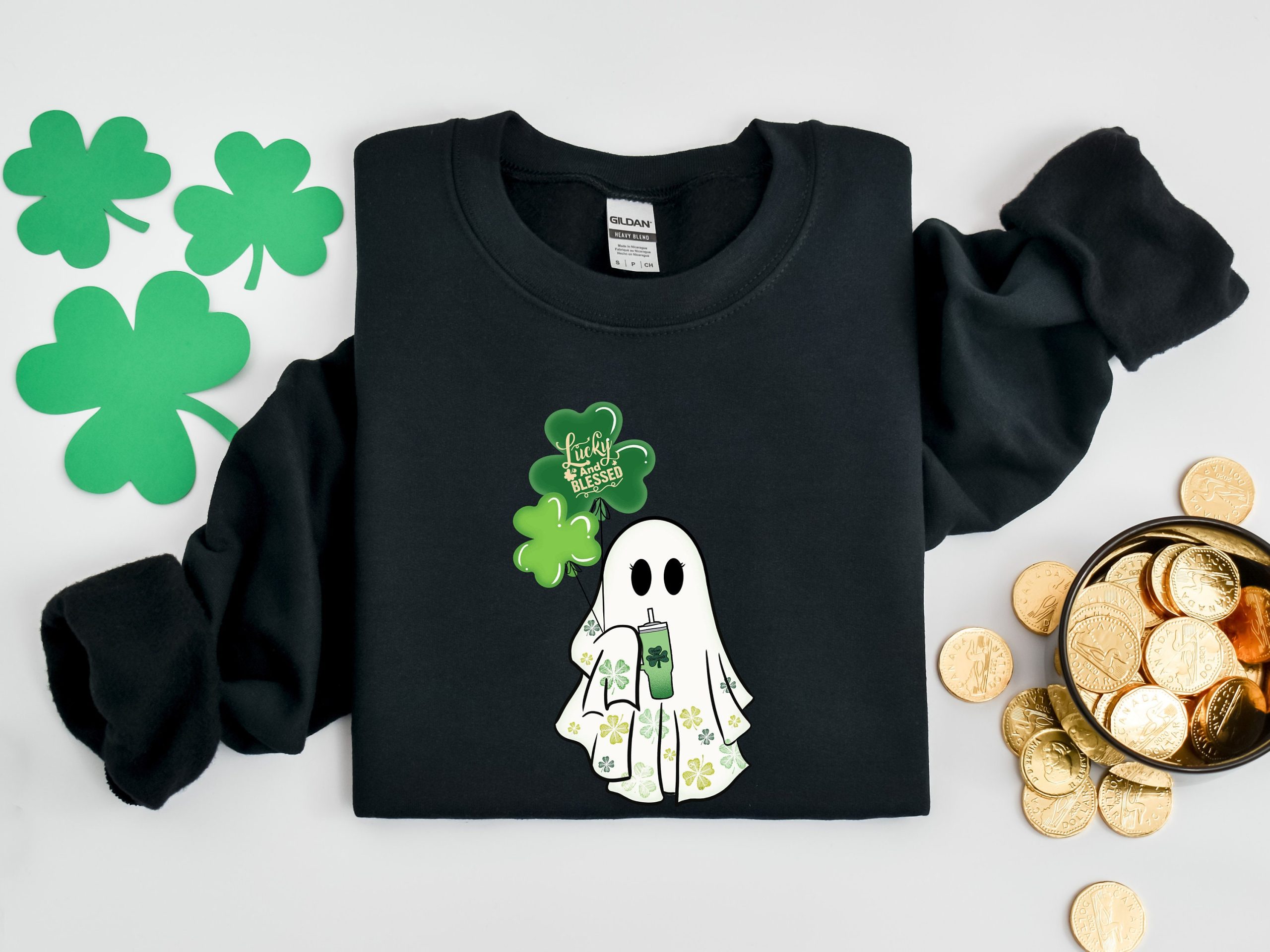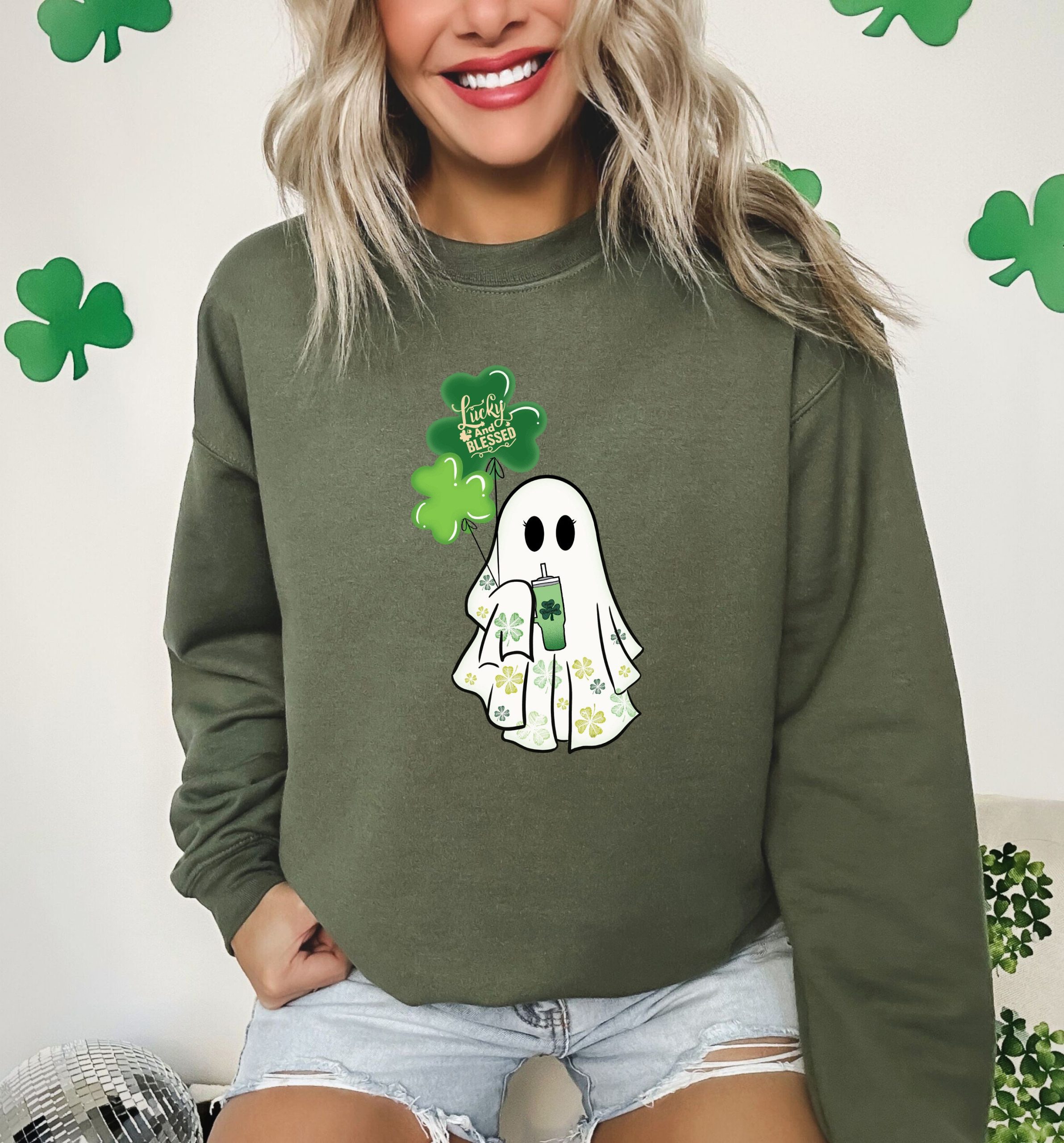 Lucky And Blessed Ghost Sweatshirt, St Patricks Day Shirt, Lucky Boo Shirt, Irish Spirit Tshirt, Clover Ghost Spooky Shirt, Clover Tee