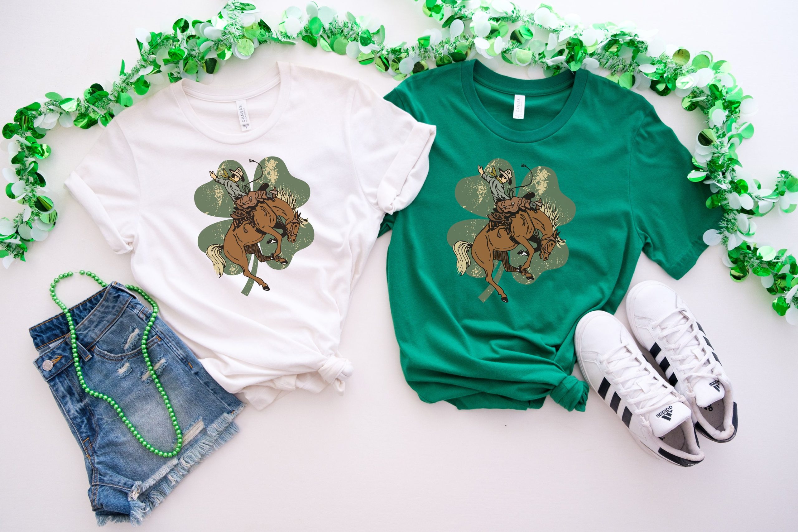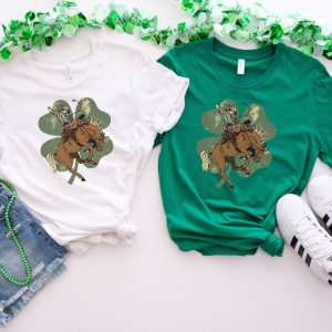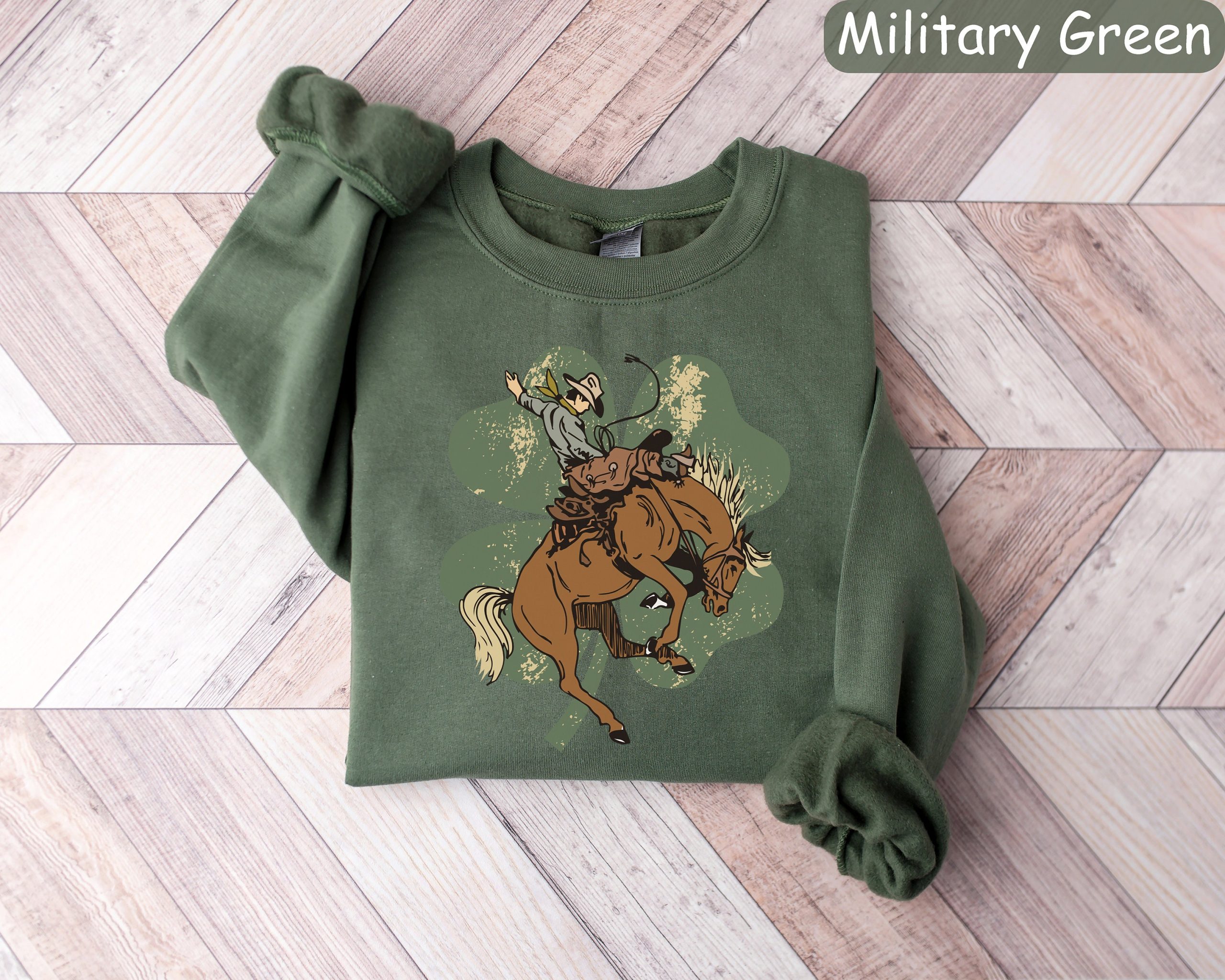 Lucky Bronc Horse Sweatshirt, Western St Patricks Day Shirt, Lucky Horse Shirt, Irish Gifts, Cowboy Sweatshirt for Women, Four Leaf Clover